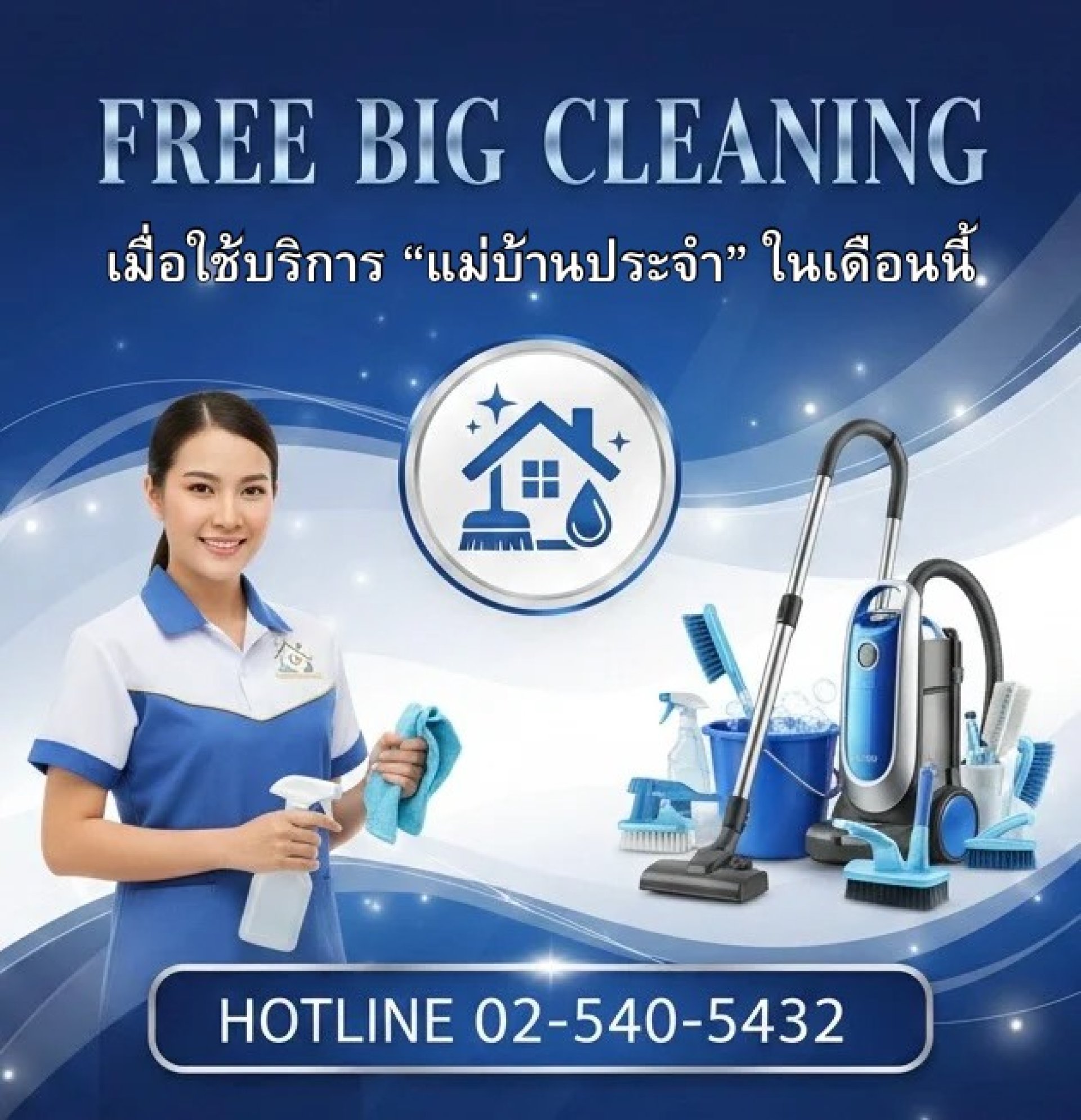 เพียงใช้ "บริการแม่บ้าน" ภายในเดือน มกราคม 2569 รับฟรีทันที บริการ "Big Cleaning" 1 ครั้ง (*เงื่อนไขเป็นไปตามที่บริษัทฯ กำหนด)